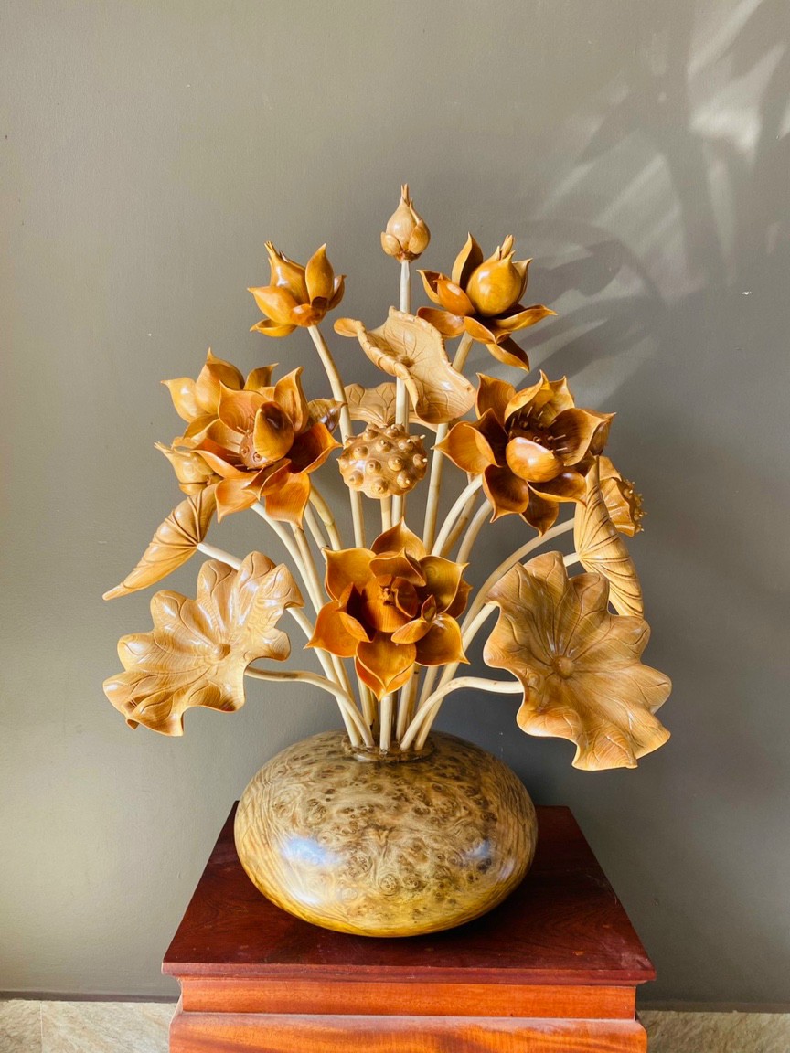 Bất ngờ ! Chỉ với 1tr800k sở hưu ngay 1 bình hoa sen gỗ hương siêu đẹp.