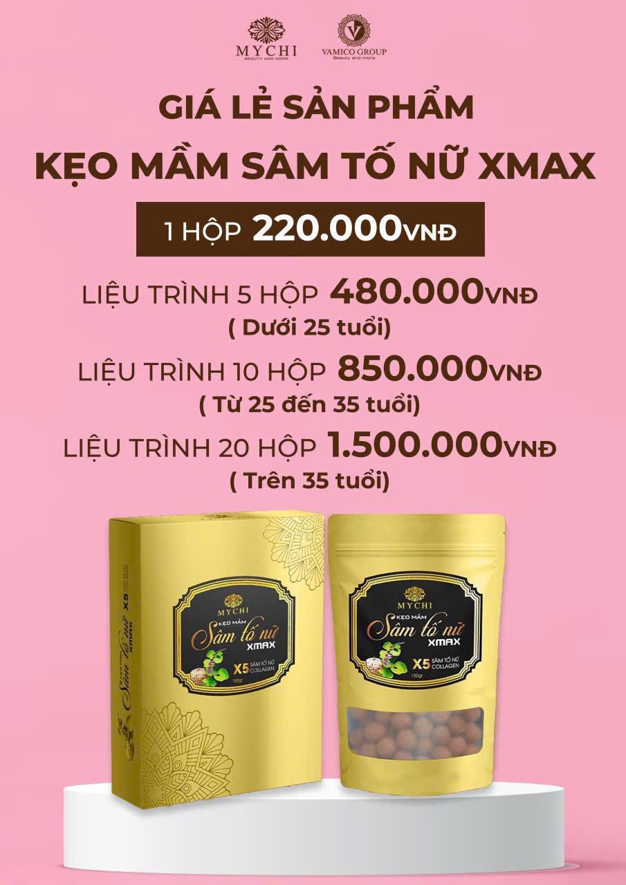 Kẹo Mầm Sâm Tố Nữ Xmax MYCHI Giá Bao Nhiêu ? Mua hàng chính hãng 0376281669