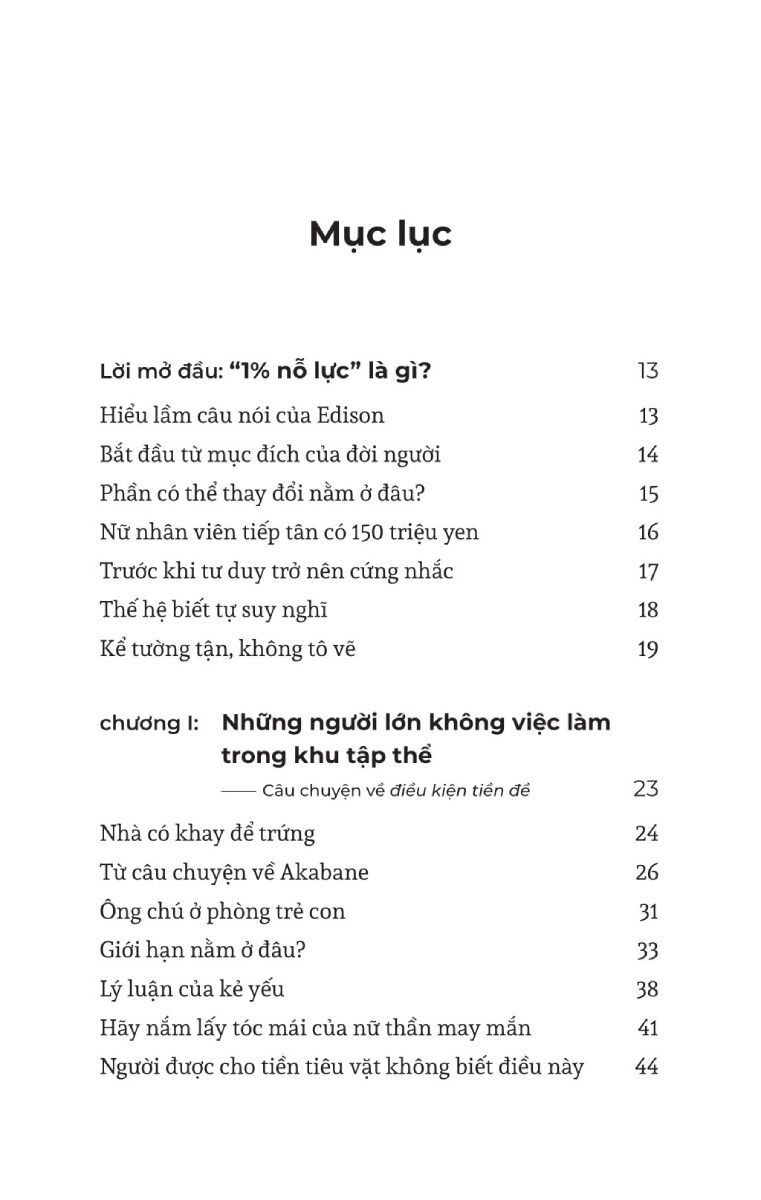 Cuốn sách này sẽ giúp bạn thay đổi "tư duy của tư duy" dựa trên 49 suy nghĩ, được chia thành bảy chủ đề chính bao gồm: quan điểm, thứ tự ưu tiên, nhu cầu và giá trị, vị trí, nỗ lực, kiểu mẫu hóa, và phần đời về sau. Những suy nghĩ này sẽ giúp bạn nhận định được lúc nào nên cố gắng, lúc nào nên buông bỏ và điều bạn có thể thay đổi để sống cuộc đời thoải mái và nhàn hạ hơn. Với cách tư duy này, bạn có thể chỉ cần bỏ ra 1% nỗ lực nhưng vẫn đạt được thành công trong công việc và hạnh phúc trong cuộc sống.