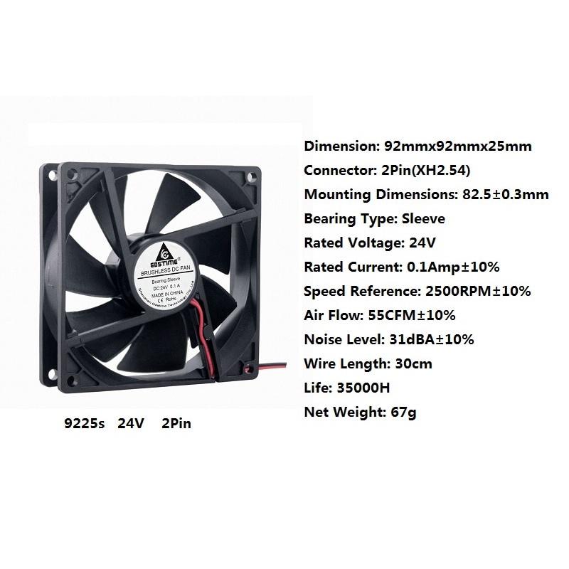 Mua tại TiktokFan Life : 30000 hrs Model Number : GC922524V2P2.5-0.1A-20P Bearing : Oil Bearing Brand Name : gdstime Compatible CPU : ALL Lines : 2 Lines Type : Fan Lifetime : 35000H Connector : XH2.54-2Pin is_customized : Yes voltage : DC 24V Gdstime DC 24V Sleeve 2Pin Cooling Fan 92mmx92mmx25mm Product Description: