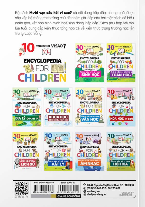 10 Vạn Câu Hỏi Vì Sao? - Encyclopedia for Children - Địa Lý Quanh Ta Nhà xuất bản : Nhà Xuất Bản Hồng Đức. Công ty phát hành : Văn Lang. Tác giả : Thu