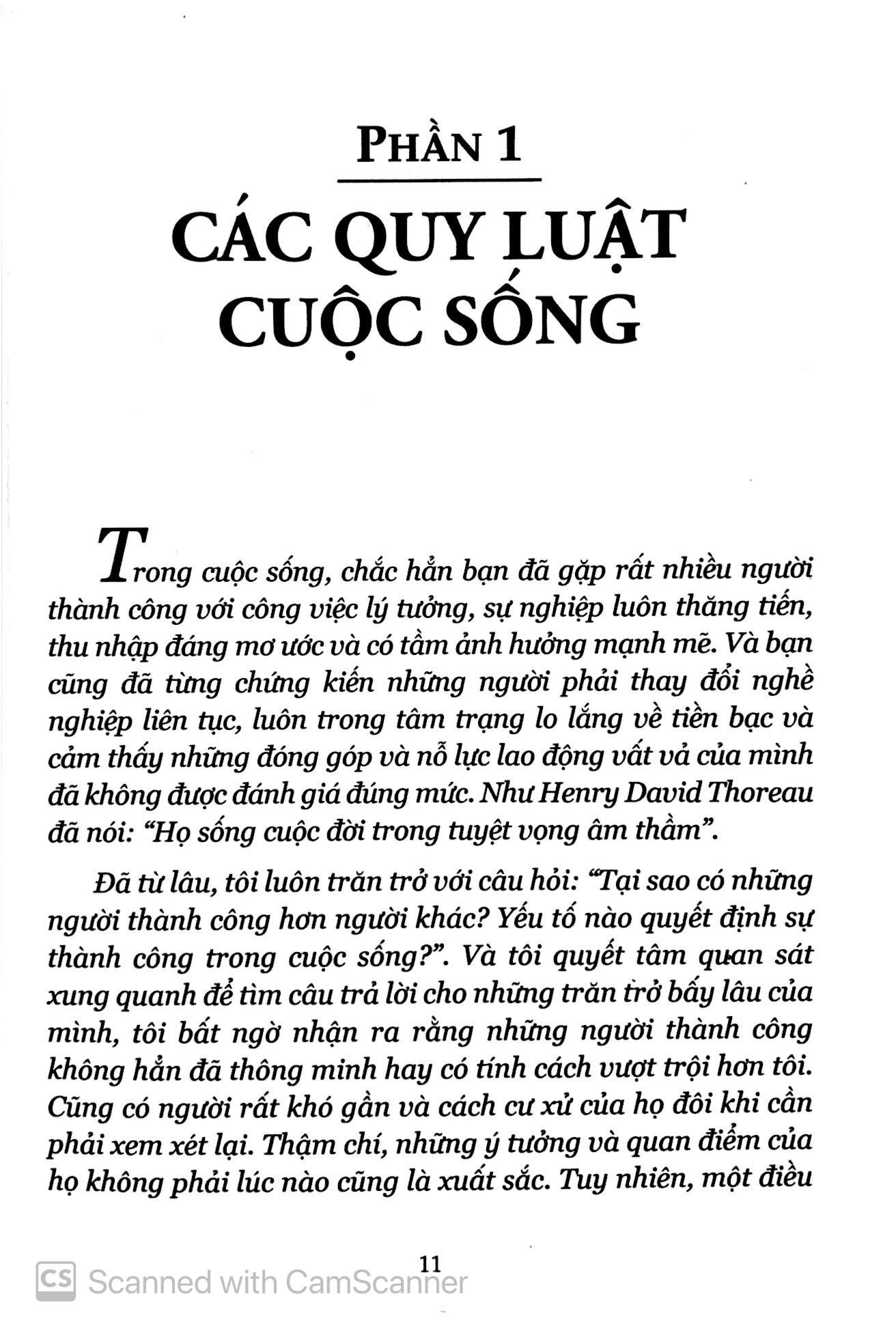 Bất kỳ quy luật nào trong cuốn sách này cũng có thể giúp bạn tiết kiệm thời gian đáng kể cũng như giúp bạn nhận ra toàn bộ khả năng tiềm ẩn của mình. Những quy luật này cũng giống như những quy luật của vật lý, toán học, cơ khí hay điện tử. Chúng đã được thử nghiệm qua thời gian, được chứng minh và áp dụng vào thực tế. Mục đích cuốn sách không bàn đến sức khoẻ, gia đình, tình yêu, sự thăng trầm của số mệnh hay bất kỳ yếu tố nào tạo nên hạnh phúc và sự thoả mãn cá nhân mà hoàn toàn chỉ đề cập đến những quy luật còn mãi với thời gian để thành công trong kinh doanh.