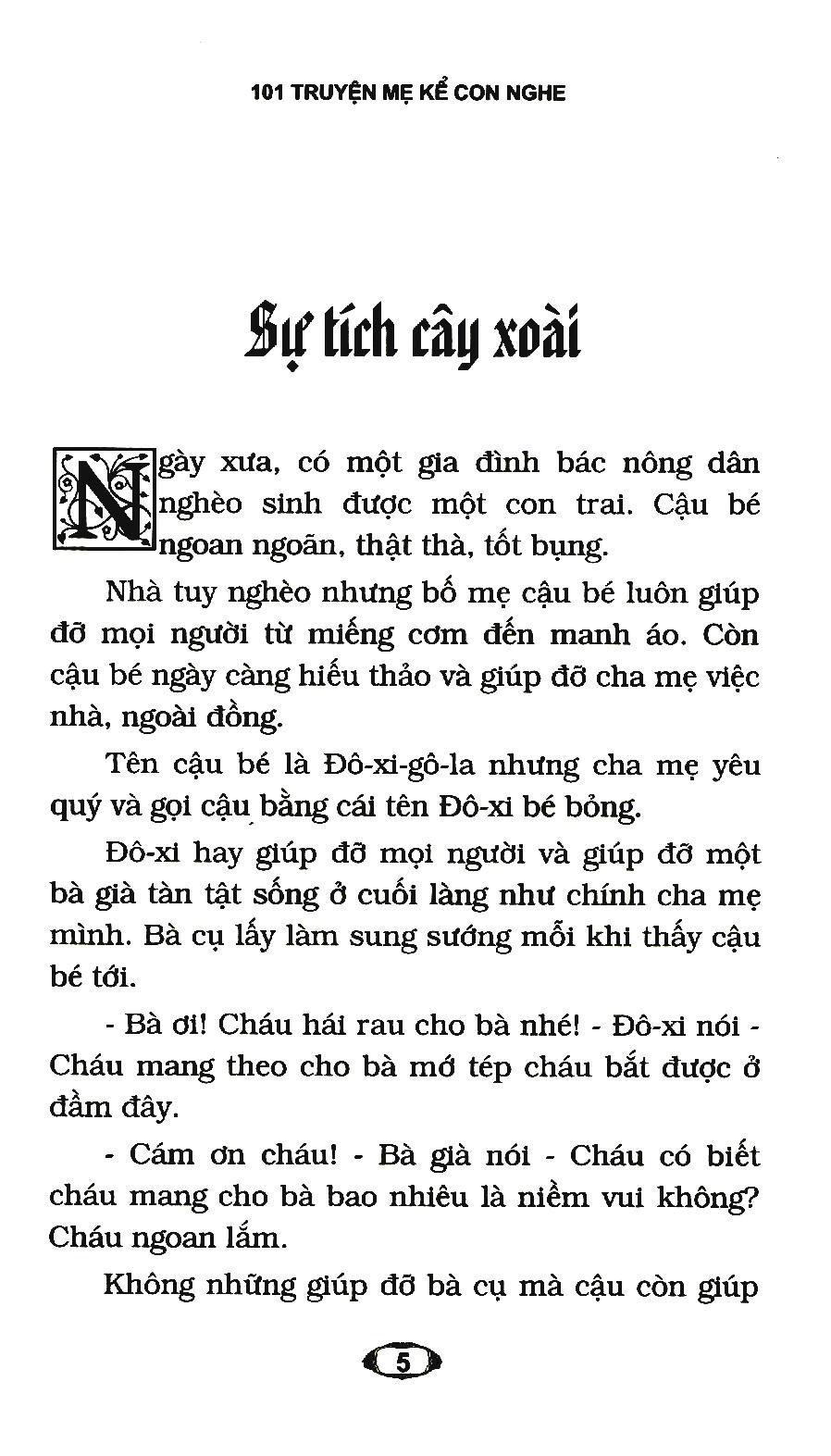 Những câu chuyện mẹ kể trước khi đi ngủ sẽ là cầu nối gắn kết tình cảm gia đình, khiến trẻ thêm yêu thương và biết ơn cha mẹ, chắc chắn đó sẽ là những kỉ niệm đẹp theo bước trưởng thành của trẻ. Bộ sách 101 Truyện mẹ kể con nghe (gồm 2 tập) chọn lọc những truyện cổ tích hay, ngắn gọn, dễ hiểu và gần gũi, giúp trẻ phát triển ngôn ngữ, trí tưởng tượng và khả năng sáng tạo.