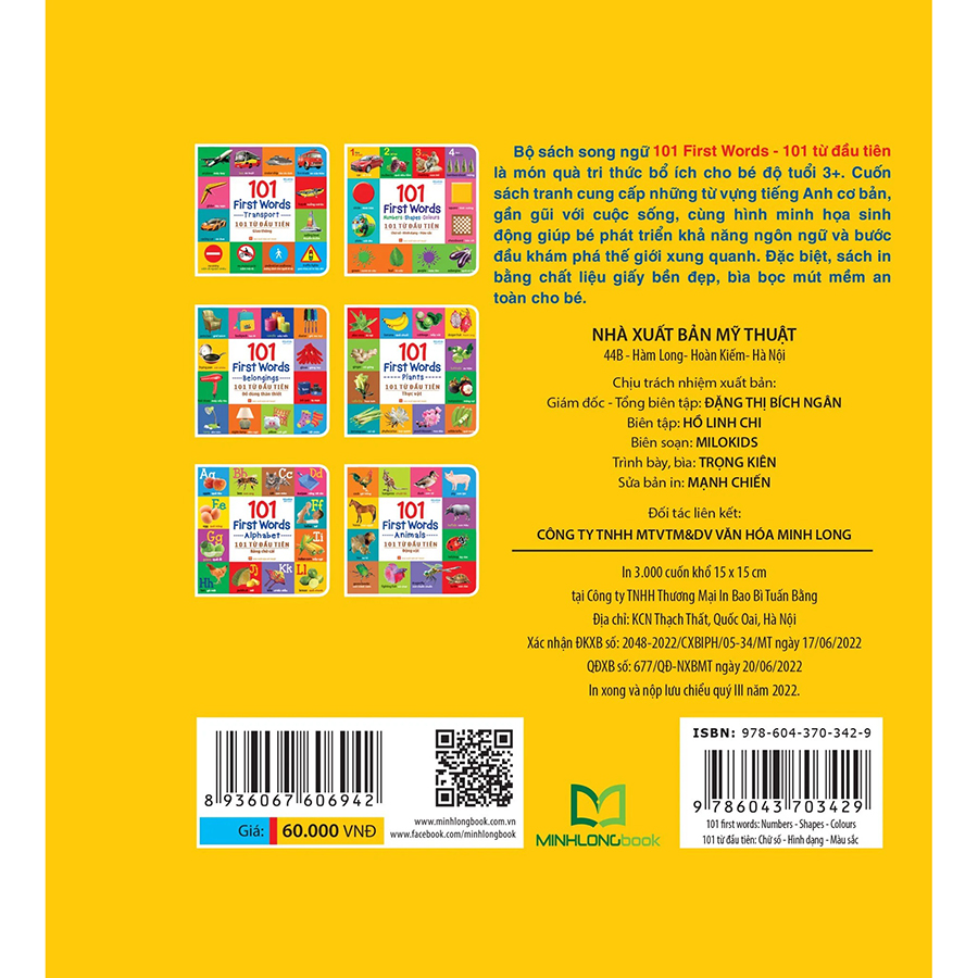 101 First Words/ 101 từ đầu tiên là những cuốn sách Anh – Việt vô cùng bổ ích dành cho các bé từ 2 đến 7 tuổi bắt đầu tập nói tiếng Anh. Bé sẽ được phát triển vốn từ tiếng Anh thông qua các chủ đề gần gũi như Giao thông, Bảng chữ cái, Các vật dụng trong nhà hay các chủ đề mang tính khám phá như Động vật… Không những thế, việc chọn lựa phương pháp chuyển tải thú vị của cuốn sách đã mở ra cho các em một thế giới hình ảnh sinh động và đầy màu sắc, giúp bé tiếp thu kiến thức và ghi nhớ dễ dàng hơn.
