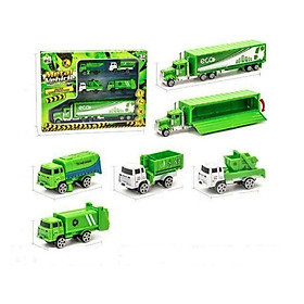 Đồ chơi xe tải kỹ thuật mô hình 901345ZE gồm 6 chiếc xe đa dạng trong 1 hộp, mô phỏng các loại xe trong công trường như xe ben, xe chở hàng, xe kỹ thuật.