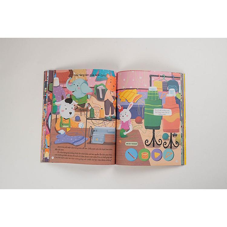 Hơn 140 hoạt động đa dạng cho bé không hề nhàm chán: tìm điểm giống và khác nhau, sắp xếp thứ tự, tìm đồ vật, học về chữ số, giải đố IQ,…0