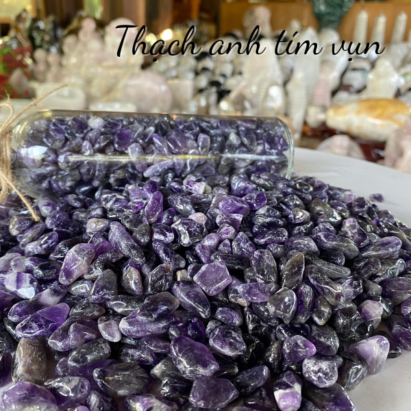 Mua tại TiktokThạch anh tím vụn và ứng dụng trong phong thủy Thạch anh tím vụn, hay còn gọi là thạch anh tím băm, là những mảnh vụn nhỏ của đá thạch anh tím tự nhiên. Loại đá này mang những đặc tính và ý nghĩa phong thủy tương tự như đá thạch anh tím nguyên khối, nhưng với giá thành rẻ hơn và dễ dàng ứng dụng trong nhiều cách bài trí khác nhau.