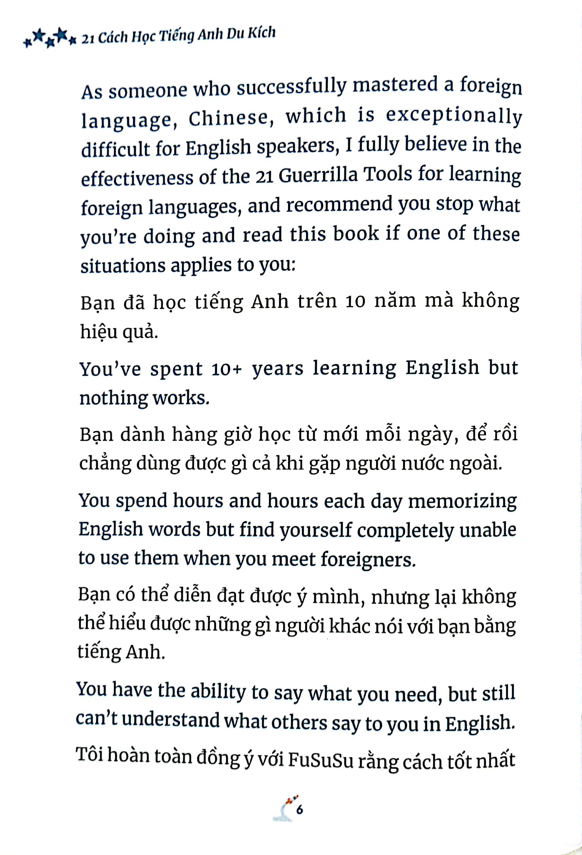 21 Cách Học Tiếng Anh Du Kích “Làm sao giỏi tiếng Anh mà không cần học?” Nghe thật lạ, nhưng đó là câu hỏi mà tác giả Fususu đã đặt ra, sau cả chục năm học tiếng Anh trên trường, mà khi cần thì vẫn không dùng được: