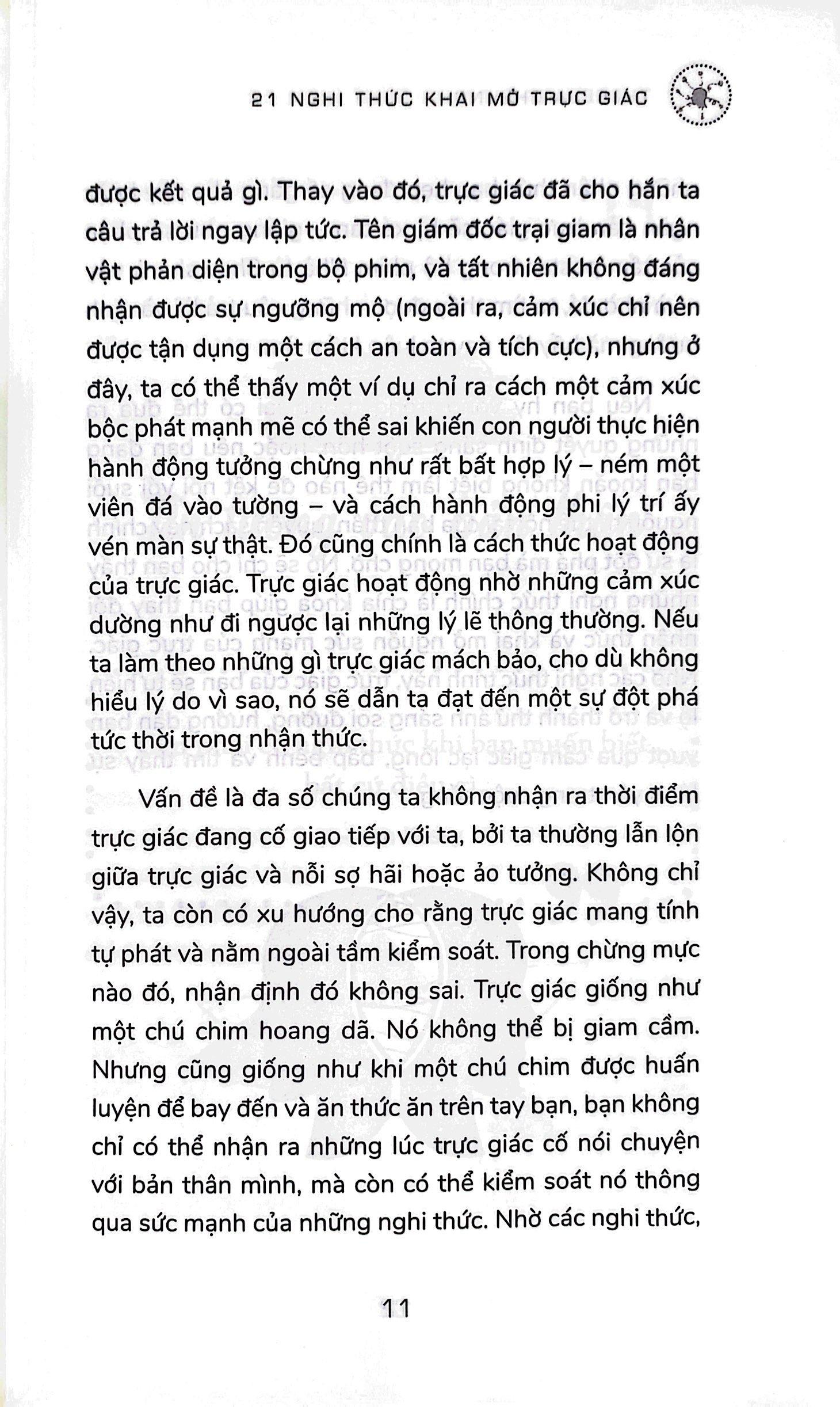 21 Nghi Thức Khai Mở Trực Giác Bạn đã từng được cứu mạng trong một tình huống nguy hiểm nhờ nghe theo giọng nói bí ẩn trong đầu mình chưa? Bạn có từng cảm thấy bồn chồn trong bụng hoặc bị đau dạ dày khi gặp ai đó? Bạn có từng tung đồng xu để quyết định một vấn đề khó khăn nào chưa? Nếu câu trả lời là “Có”, hẳn bạn không quá xa lạ với khái niệm “trực giác”. Nhưng chính xác thì “trực giác” là gì? Có quan hệ gì với ta và giúp ích gì cho cuộc sống của ta? Ta giao tiếp với trực giác bằng cách nào? Quyển sách 21 Nghi Thức Khai Mở Trực Giác sẽ giúp bạn trả lời những câu hỏi này.
