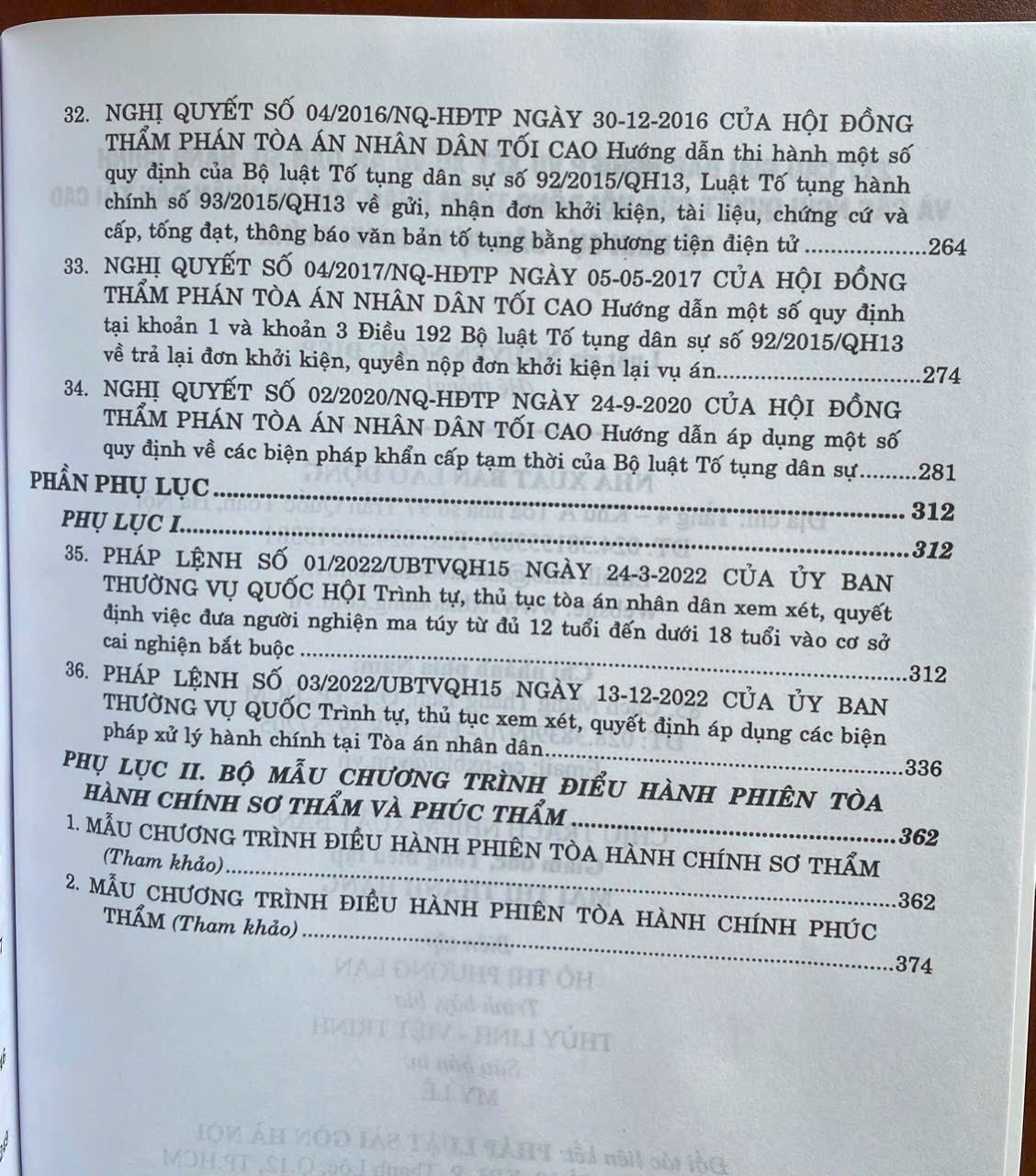 Ngoài ra Phần phụ lục cuốn sách có in 02 Pháp lệnh mới nhất áp dụng cho Tòa án các cấp trong lĩnh vực xử lý vi phạm hành chính gồm:
