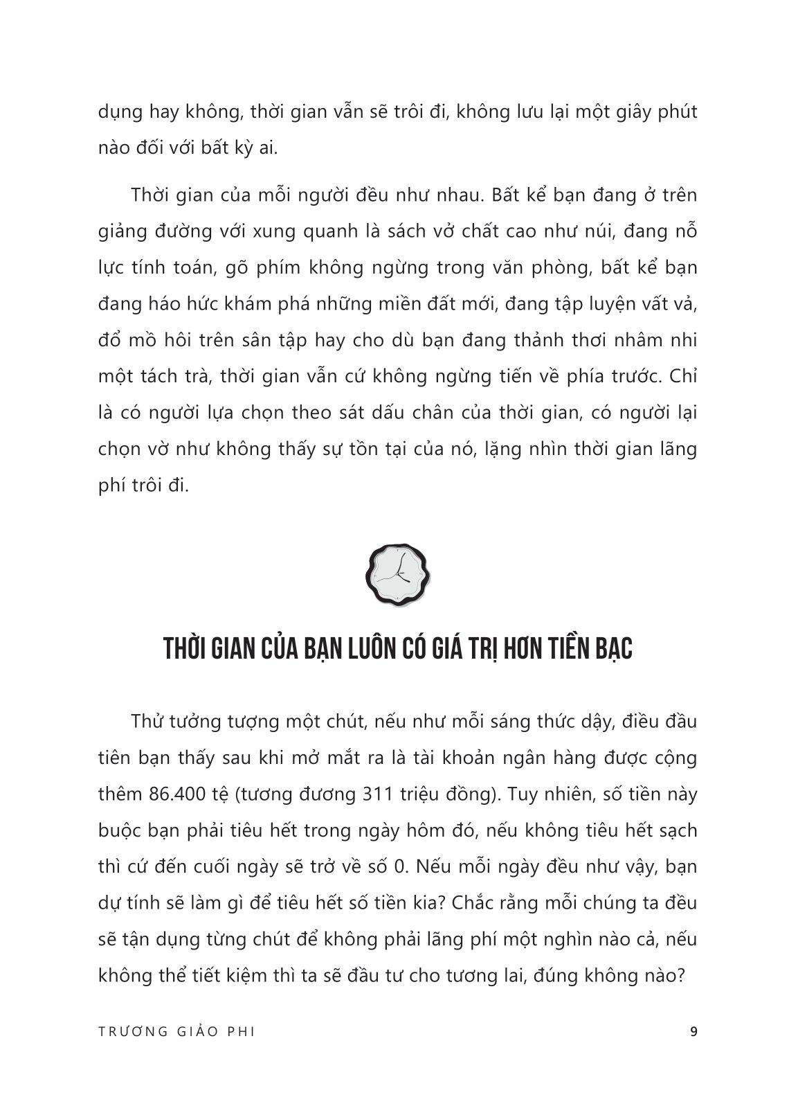 Ai cũng chỉ có vỏn vẹn 24 tiếng mỗi ngày, thế mà người thì hoàn thành đúng kế hoạch và tận hưởng cuộc sống, người thì bận rộn đến kiệt sức cũng không đạt được gì cả. Thời gian đôi khi vô tận khiến ta không thể nắm bắt, song cũng có lúc lại keo kiệt đến mức thắt nghẹt con người. Những tưởng như vậy là không công bằng, nhưng thật ra bạn lại đang tự tay đẩy bản thân vào lối sống bế tắc khi thờ ơ để từng ngày trôi đi vô nghĩa.