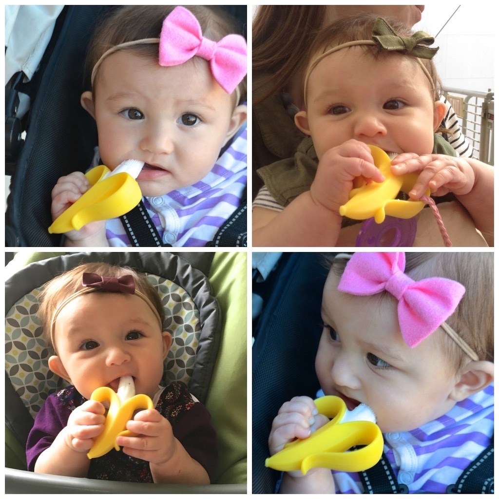 - Ngậm nướu hình quả chuối giúp bé yêu giảm bớt sự khó chịu, ngứa ngáy của nướu trong giai đoạn mọc răng này