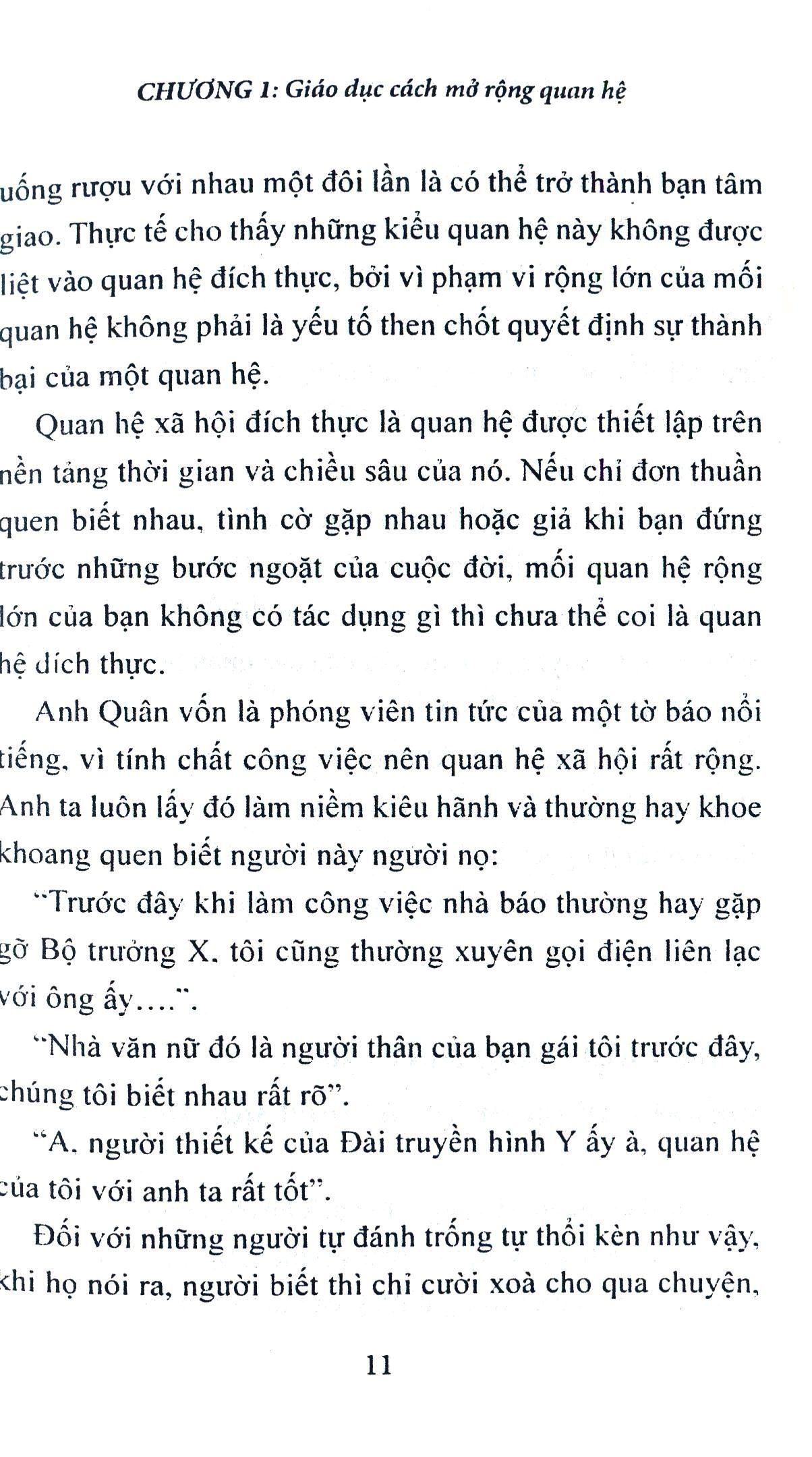 Với mong muốn đem tới cách thiết lập quan hệ giao tiếp thành công với một thái độ hợp lý, đúng mực, cuốn sách đưa ra một vài quan niệm và sách lược về cuộc sống và quan hệ xã hội của một con người cần hành động theo thứ tự, nguyên tắc nào để quan hệ cộng đồng ngày càng gần gũi, gắn bó và thân thiết hơn. Đề tài được đề cập tuy không mới nhưng cách tiếp cận của tác giả tương đối dễ đọc, dễ hiểu, hy vọng cuốn sách sẽ là một tài liệu tham khảo mang lại nhiều lợi ích cho bạn đọc.