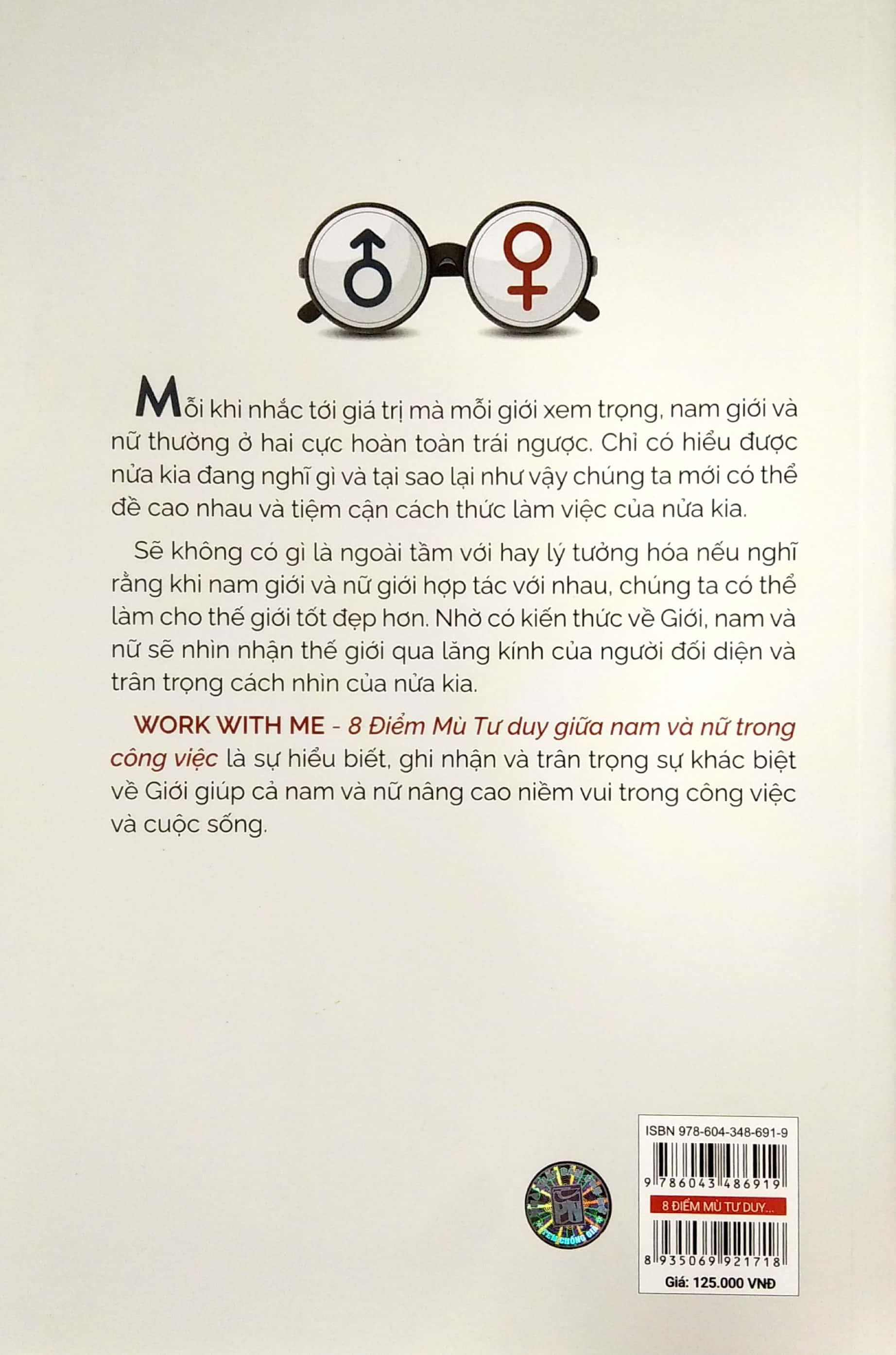 WORK WITH ME - 8 Điểm Mù Tư duy giữa nam và nữ trong công việc không phải là cuốn từ điển bách khoa dạy bạn cách xử lý mọi tình huống mà nó là một cuốn sách kỹ năng giúp bạn nâng cao nhận thức và hiểu biết của bản thân để có thể hòa hợp được với người khác phái. WORK WITH ME - 8 Điểm Mù Tư duy giữa nam và nữ trong công việc sẽ giúp bạn hiểu được tư duy của người khác giới. Bạn sẽ học được cách đặt mình vào vị trí của người khác phái, cách để thực sự lắng nghe, truyền đạt thông tin và hợp tác hiệu quả. Từ hiểu rõ hơn về người khác phái, bạn sẽ biết cách trân trọng họ hơn và nhận ra rằng sự khác biệt về Giới chính là bổ trợ tuyệt vời cho cả hai giới.