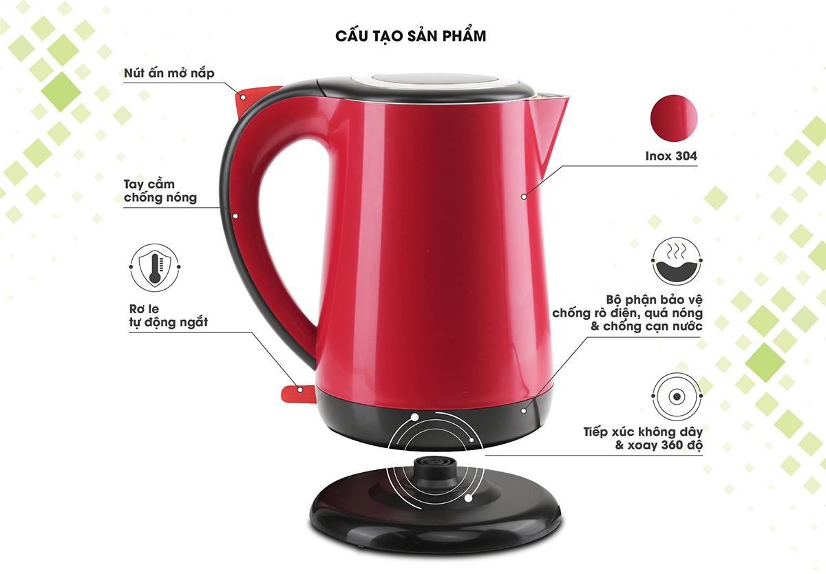 - Tự động ngắt khi nước sôi hay nước bị trào do đổ quá vạch max quy định, đảm bảo an toàn cho người sử dụng
