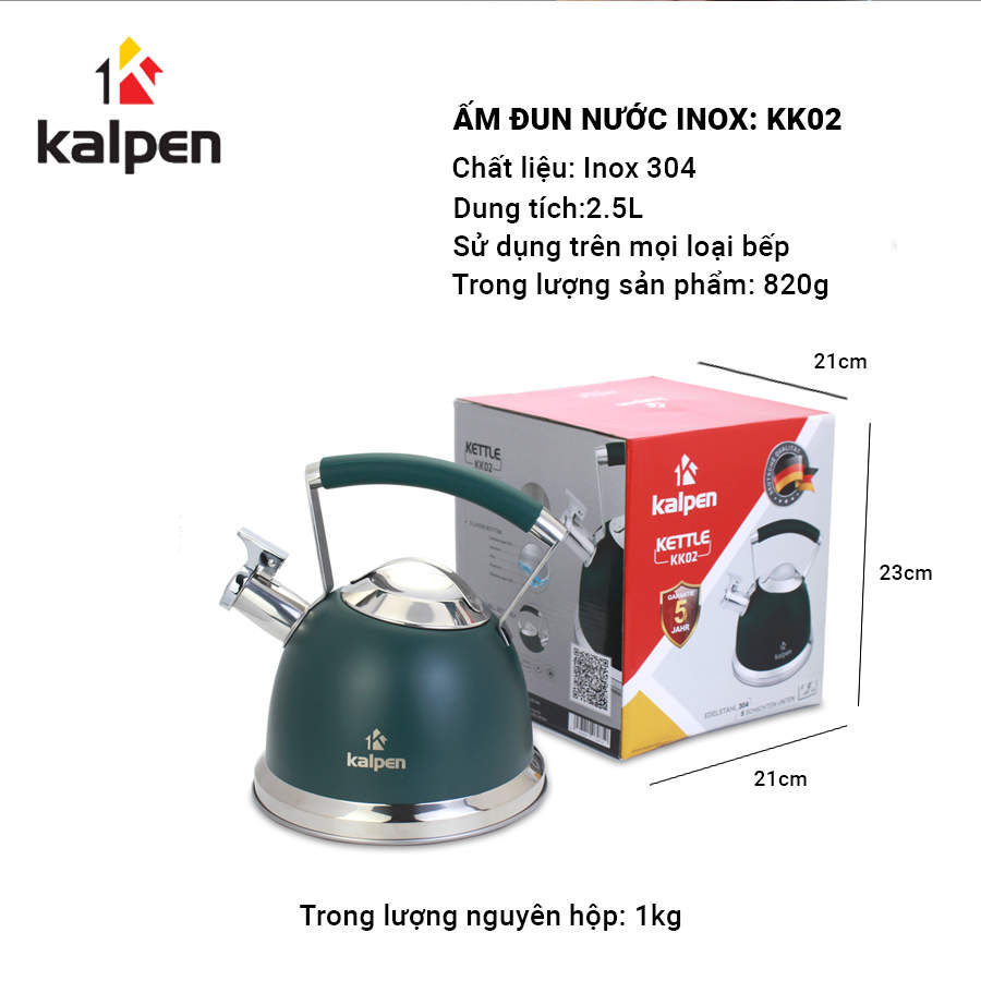 ✨Ấm đun nước Inox 304 cao cấp Kalpen KK02 dung tích 2.5L dùng bếp từ chuẩn Đức - Hàng chính hãng