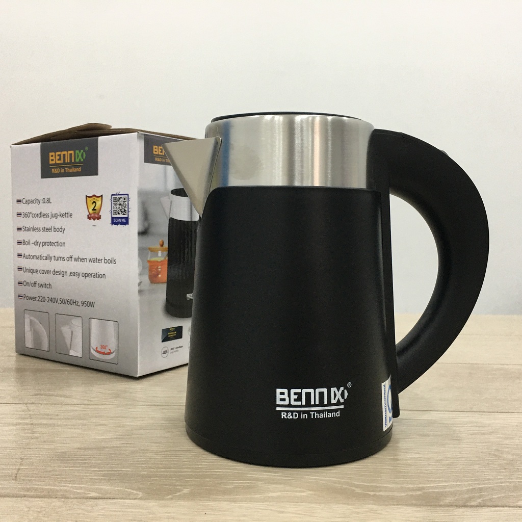 ✨Ấm Đun Nước Siêu Tốc 2 Lớp Inox 304 Bennix BN-008EK (800ml)- Hàng Chính Hãng