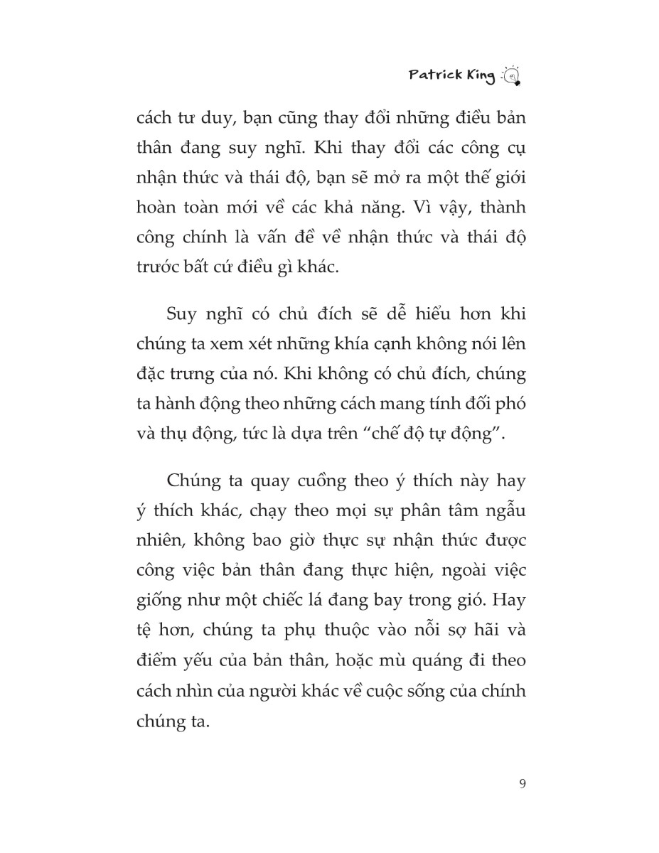 soát bản thân ở mức độ cơ bản hơn. Khi thay đổi cách tư duy, bạn cũng thay đổi những điều bản thân đang suy nghĩ. Khi thay đổi các công cụ nhận thức và thái độ, bạn sẽ mở ra một thế giới hoàn toàn mới về các khả năng. Vì vậy, thành công chính là vấn đề về nhận thức và thái độ trước bất cứ điều gì khác.