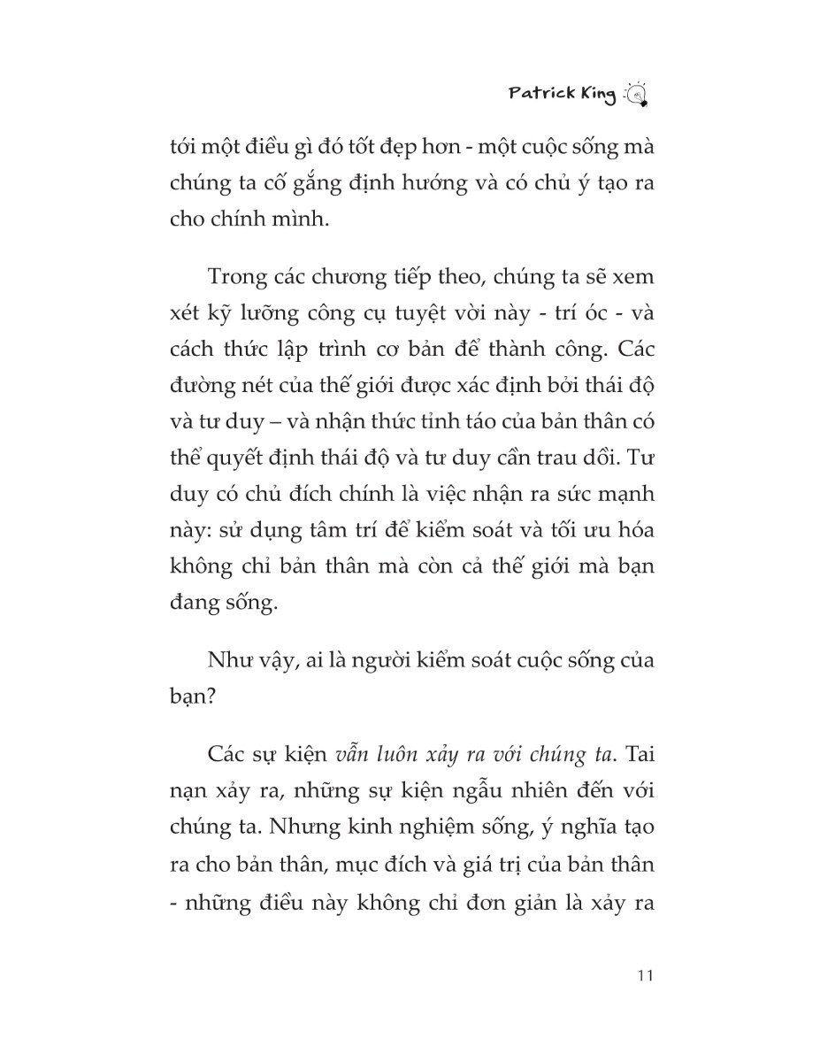 THAY ĐỔI MỘT SUY NGHĨ THAY ĐỔI MỘT CUỘC ĐỜI Trong cuốn sách này, tác giả đã tổng kết ra những trường hợp điển hình, thông qua đào sâu phân tích và thảo luận để dẫn mọi người cùng tìm kiếm và “nhìn thấy" mô thức sống hiện nay của họ. Những đau khổ của cuộc đời có muôn hình vạn trạng, nhưng mô thức nội tại thì gần như đều giống nhau, ví dụ mô thức bi quan, mô thức đấu tranh nội tâm, mô thức đau khổ, mô thức giả vờ bận rộn, mô thức tự cao tự đại, mô thức chỉ trích, mô thức làm nạn nhân, mô thức thao túng, mô thức sợ hãi, mô thức la â Trong những trường hợp sinh động này, bạn có thể nhìn thấy bóng dáng của mình, đồng thời phát hiện ra mô thức sống mà mình đang vận hành. Chỉ khi nhìn thấy mô thức sống của chính mình, con người mới tự nhiên thay đổi. Tác giả gọi quá trình thay đổi này là “nâng cấp sinh mệnh". Bản thân tác giả cũng đã từng trải nghiệm việc đi trên con đường ấy, vì vậy, có lẽ tác giả biết còn rất nhiều tâm hồn khác nhau đang trải qua những đau khổ vô minh giống như ông và cần được đánh thức! Thông qua cuốn sách này, có thể giúp cuộc đời của bạn đọc trở nên tốt đẹp hơn. Cuộc đời của mỗi chúng ta đều có thể vô cùng đẹp đẽ, và cũng có thể tầm thường vô vị, mấu chốt là ở chỗ chúng ta có thể nhìn thấy và cảm nhận mô thức sống của mình đồng thời không ngừng nỗ lực để theo đuổi một cuộc đời tốt đẹp hơn hay không. Vì vậy, khi bạn đang than thở cuộc đời không như ý, oán trách bất công, hãy tự hỏi bản thân rằng: Mình đã tạo ra tất cả mọi thứ ngày hôm nay như thế nào? Loại mô thức nội tại nào của mình khiến thế giới đối xử với mình như vậy. Hãy mở cuốn sách này ra, có lẽ trong đây có câu trả lời mà bạn cần!