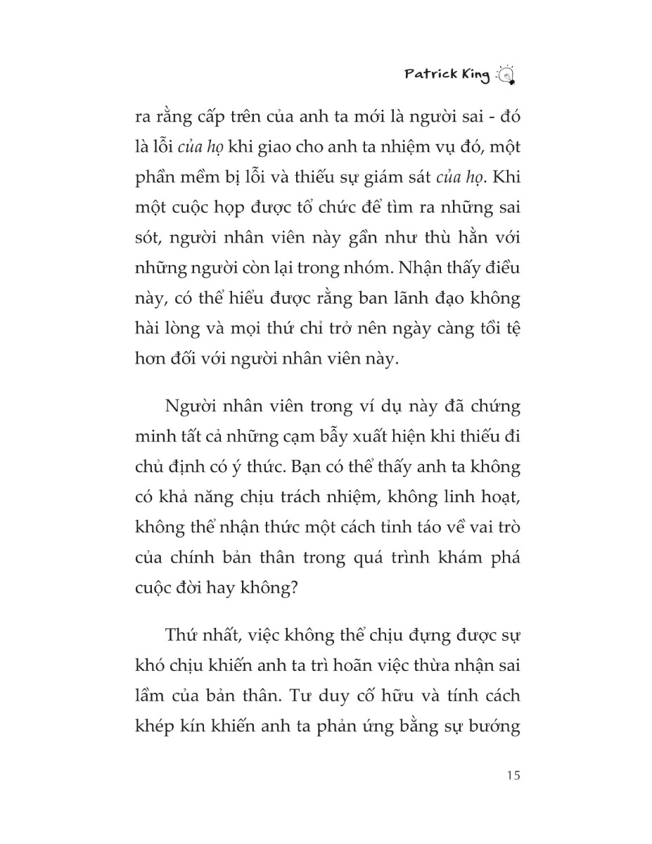 Suy nghĩ có chủ đích sẽ dễ hiểu hơn khi chúng ta xem xét những khía cạnh không nói lên đặc trưng của nó. Khi không có chủ đích, chúng ta hành động theo những cách mang tính đối phó và thụ động, tức là dựa trên “chế độ tự động”. Chúng ta quay cuồng theo ý thích này hay ý thích khác, chạy theo mọi sự phân tâm ngẫu nhiên, không bao giờ thực sự nhận thức được công việc bản thân đang thực hiện, ngoài việc giống như một chiếc lá đang bay trong gió. Hay tệ hơn, chúng ta phụ thuộc vào nỗi sợ hãi và điểm yếu của bản thân, hoặc mù quáng đi theo cách nhìn của người khác về cuộc sống của chính chúng ta.