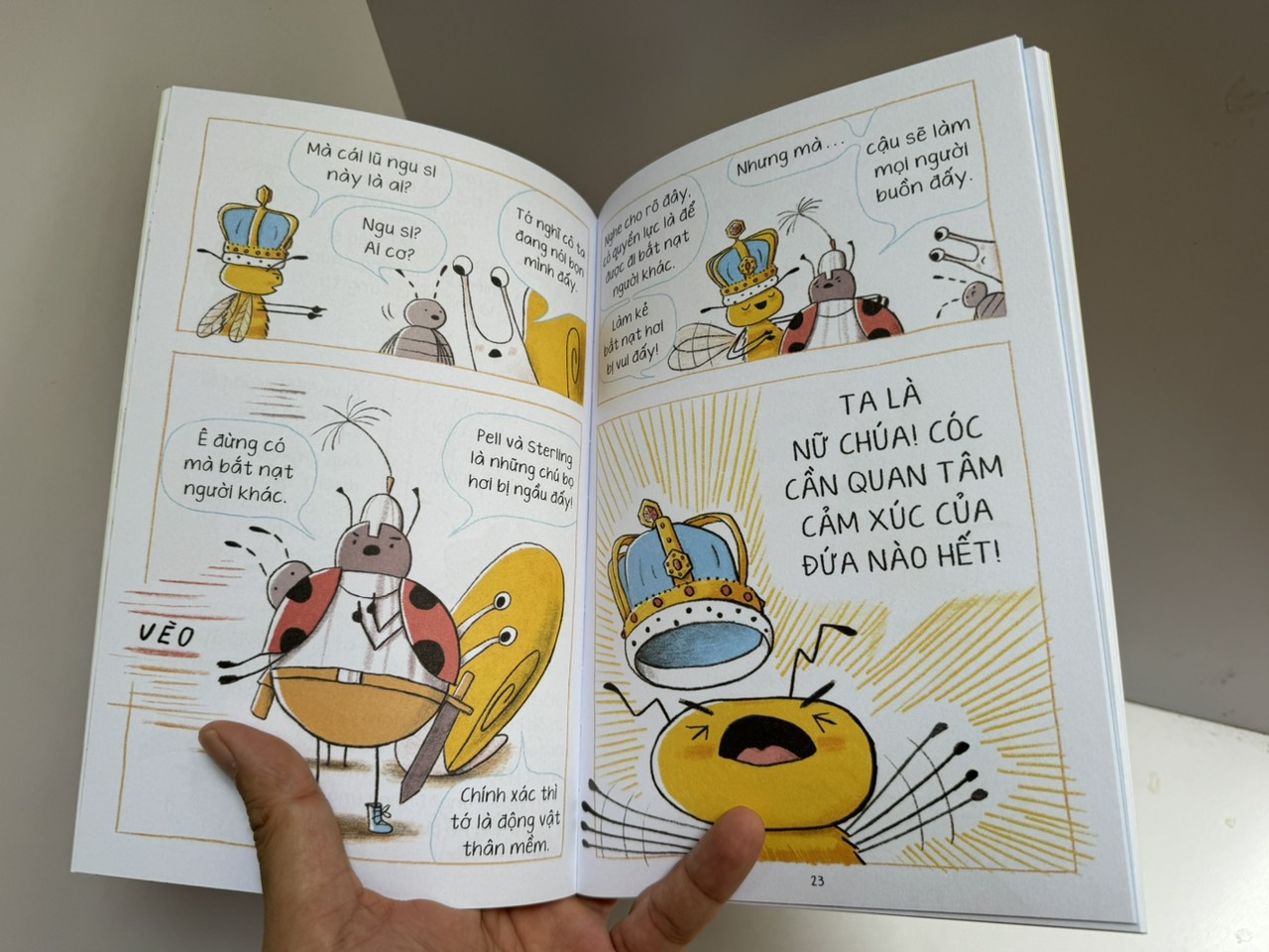 Câu chuyện được kể bằng lối vẽ minh họa sống động và màu sắc rực rỡ, tạo nên một thế giới đầy sinh động. Cách dẫn truyện và tạo hình theo tư duy trẻ em rất dí dỏm. Nhân cách hoá các loài côn trùng gần gũi ở Việt Nam: bọ rùa, ốc sên, bọ hung, mọt sách, nhện, ong,