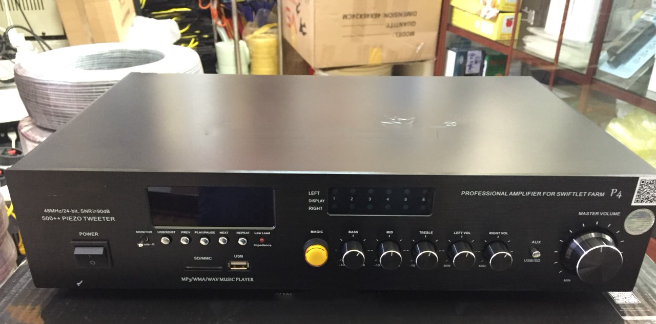 AMPLY P4 (600 loa) Mã số : AMP4 Thiết kế theo tiêu chuẩn chuyên nghiệp âm thanh vòm, trong ngành nuôi chim yến. Âm thanh phát cho tiếng trong trẻo, không bị rè, méo tiếng.