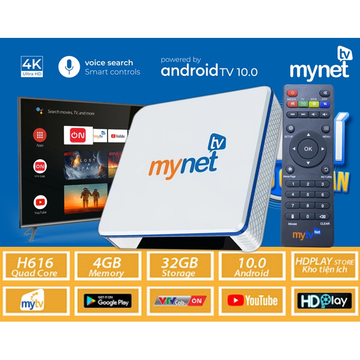 ✨Android MyTV Net 4H Ram 4GB Rom 32GB New 2022 - Tích hợp điều khiển giọng nói, Android 10.0 cấu hình mạnh mẽ - Hàng chính hãng