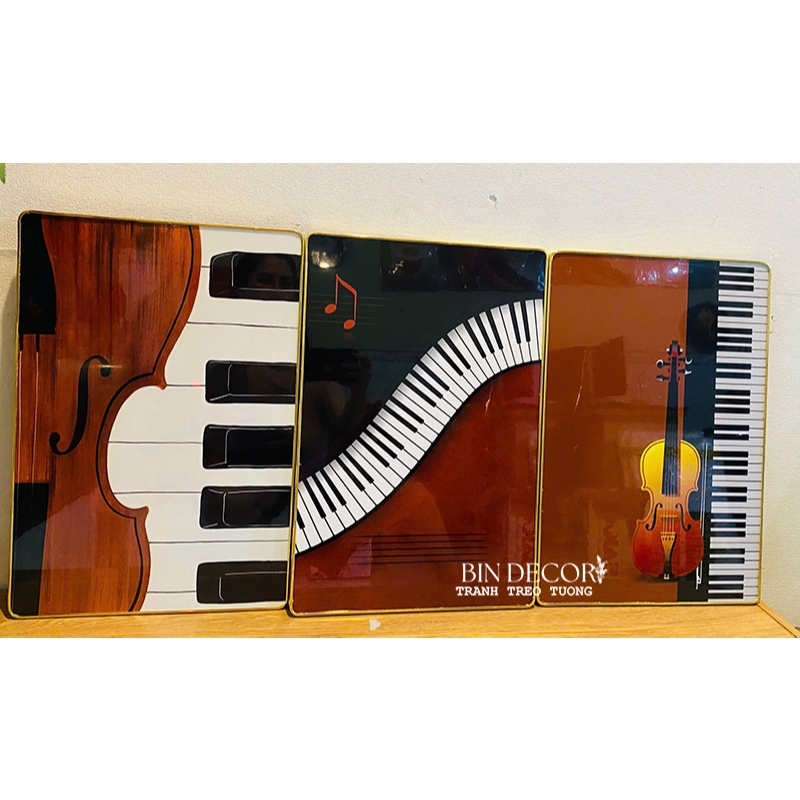 Tranh treo tường trang trí decor âm nhạc 25 - Kích thước của tranh : Kích thước : 25x35cmx3 tấm - 30x45cmx3 tấm - 40x60cmx3 tấm - Chất liệu : Tráng gương - kim sa