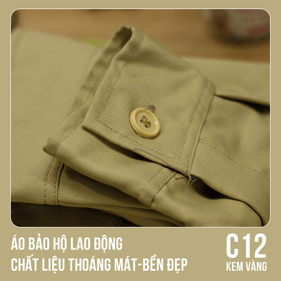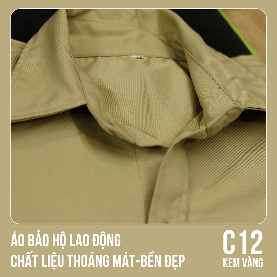 ✨Áo bảo hộ lao động, chất liệu thoáng mát, bền đẹp - Mã C12 (Kem Vàng)