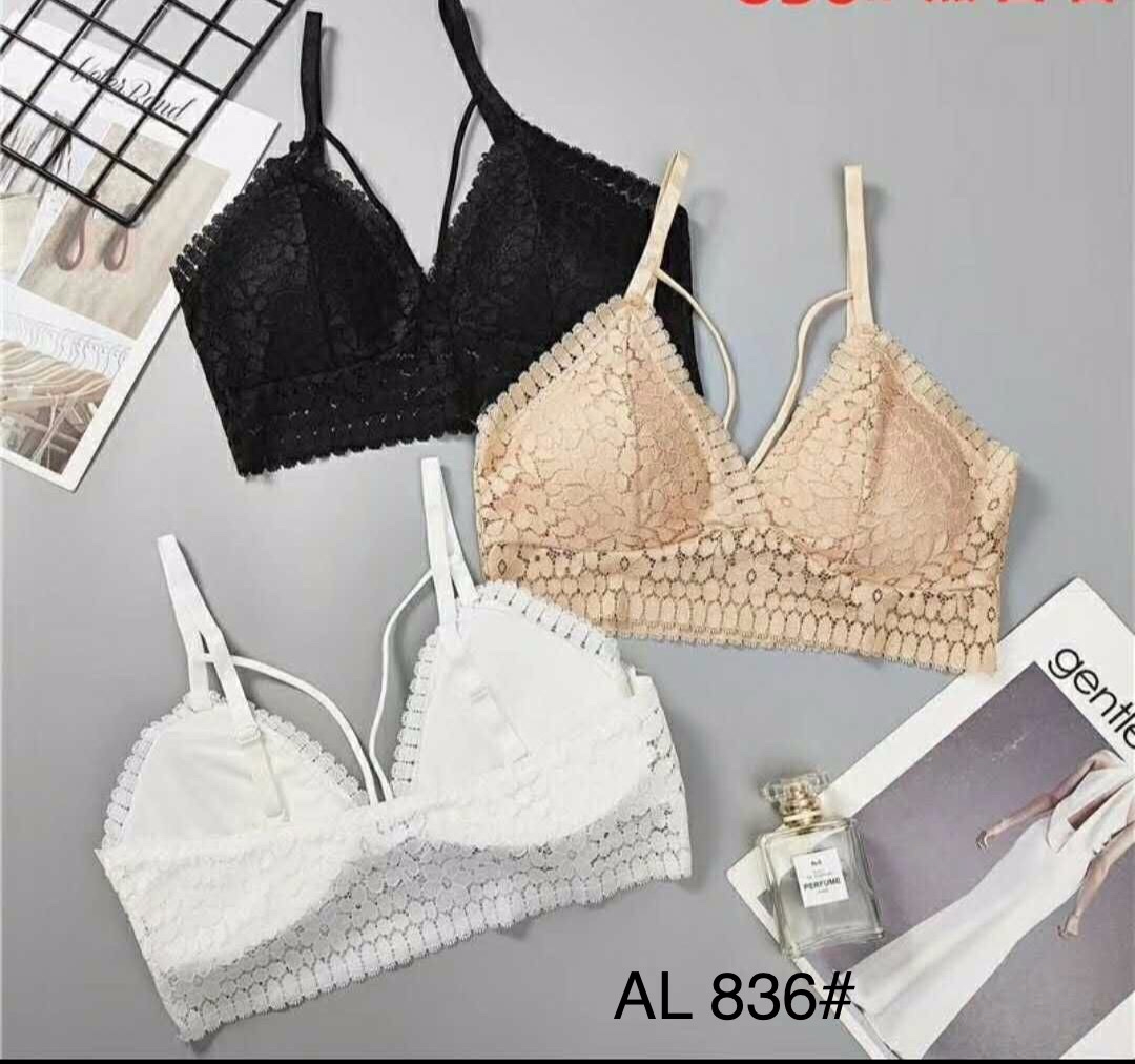3 màu cơ bản: Đen, Trắng, Da (Nude) – dễ phối cùng mọi trang phục. Thông Số Kỹ Thuật Thông Số Chi Tiết Mã sản phẩm AL836 Kiểu dáng Bra không gọng, không mút dày, dây chéo trước ngực Chất liệu Ren mềm + thun co giãn 4 chiều Size F (75–85cm) Màu sắc Đen, Trắng, Da (Nude) Điều chỉnh Dây vai & móc cài 3 cấp Xuất xứ Trung Quốc Lợi Ích Khi Sử Dụng