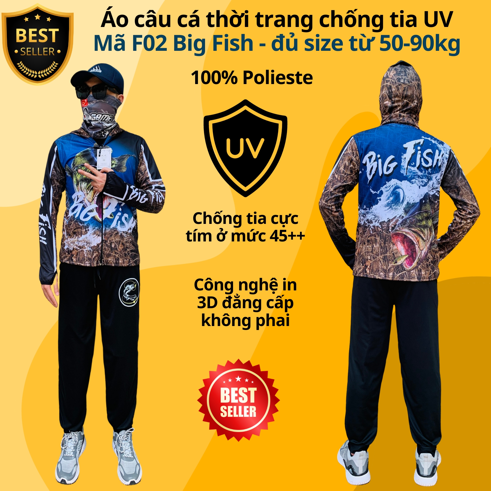✨Áo câu cá thời trang chống nắng F05 Cá vàng F02 Big Fish đủ size từ 50-85kg - Áo đi câu chất liệu chống tia UV cao cấp D Danido