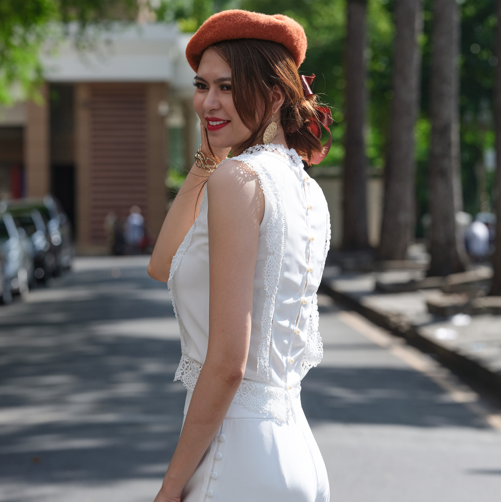 Thiết kế áo trễ vai croptop thắt nơ vai phối chung với quần đồng bộ cotton thêu trắng có thể kết hợp với nhiều phụ kiện khác nhau như sandal, giày cao gót, túi xách,... tạo nên phong cách thời trang đa dạng, phù hợp cho nhiều hoàn cảnh khác nhau. Chiếc áo trễ vai croptop thắt nơ vai phối chung với quần đồng bộ cotton thêu trắng là biểu tượng của sự thanh lịch, nhẹ nhàng và đầy nữ tính. Thiết kế này tôn vinh vẻ đẹp tự nhiên của người phụ nữ, giúp bạn tự tin tỏa sáng trong mọi hoàn cảnh. Kiểu dáng áo ngắn ngang lưng quần Trễ vai, nhấn dây cột vai Lai bo Tay dài qua khuỷ tay Cài bằng hàng nút phía trước Cotton thêu máy Chất liệu chính: Cotton thêu Cotton thêu máy được làm từ 100% sợi bông tự nhiên, mang đến cảm giác mềm mại, thoáng mát và an toàn cho da, đặc biệt phù hợp với khí hậu nóng ẩm của Việt Nam. Sợi cotton có độ bền cao, ít bị xù lông hay sờn phai sau nhiều lần giặt, giúp sản phẩm giữ được form dáng lâu dài. Khả năng thấm hút mồ hôi tốt giúp người mặc luôn cảm thấy thoải mái và dễ chịu trong mọi hoạt động. Cotton thêu máy nổi tiếng với những họa tiết thêu tinh tế và đa dạng, từ hoa văn đơn giản đến những chi tiết cầu kỳ, phức tạp. Kỹ thuật thêu máy hiện đại giúp tạo ra những đường nét sắc sảo, sống động và đầy nghệ thuật. Cotton thêu máy đã trở thành chất liệu "quốc dân" tại Nhật Bản bởi những ưu điểm vượt trội về chất lượng, họa tiết và ứng dụng. Người Nhật yêu thích sự tinh tế, thanh lịch và sang trọng của cotton thêu máy, đồng thời trân trọng giá trị văn hóa truyền thống được thể hiện qua các họa tiết thêu. Chất liệu này thường được sử dụng trong các dịp lễ Tết, đám cưới, hay để làm quà tặng cho người thân, bạn bè. Nghệ nhân: Yến, Xuân Cắt may thủ công tinh tế tại Hity Atelier, Nha Trang, Việt Nam Người mẫu Nguyễn Thu cao 170cm, vòng ngực 81cm vòng eo 63cm vòng mông 93cm - người mẫu đang mặc size S. Gọi Ms. Hity +84909028606 để Ms. Hity hỗ trợ bạn chọn size khi có phân vân nhé! Hity cung cấp dịch vụ đặt may theo số đo và thiết kế riêng theo từng yêu cầu của quý khách. Mời bạn thoải mái trò chuyện cùng Ms. Hity tại +84909028606 để Hity được phục vụ bạn nhé! HƯỚNG DẪN SỬ DỤNG Để trang phục của bạn luôn sạch sẽ, mới đẹp và cùng góp phần bảo vệ môi trường giảm thải quần áo cũ, Ms. Hity khuyến khích bạn chăm sóc đúng cách quần áo của mình: Giặt máy ở nhiệt độ tối đa 30ºC, bọc trong túi giặt, vắt ở tốc độ thấp Không sử dụng nước tẩy / thuốc tẩy Phơi khô trên bề mặt phẳng Không sử dụng máy sấy Ủi ở nhiệt độ tối đa 150ºC (chế độ Cotton/ Linen) Ủi bằng bàn ủi hơi nước