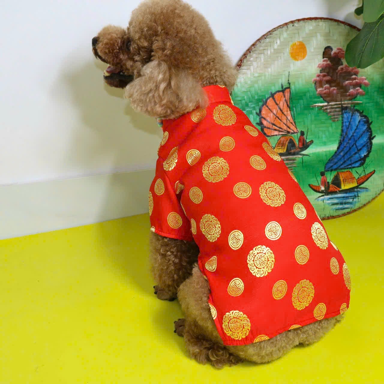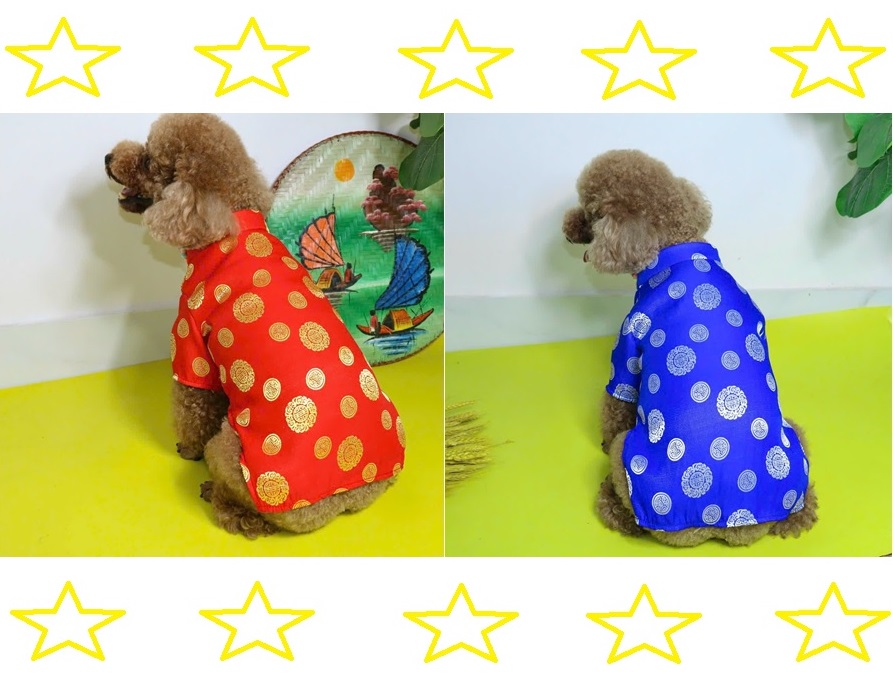 ÁO DÀI TẾT GẤM THÁI CAO CẤP TỪ 0.5-15KG DÀNH CHO THÚ CƯNG CHÓ MÈO 1. Thiết kế : Áo Tết gấm thái cao cấp, mát, bền, đẹp, dễ thương. In hình đồng tiền dễ
