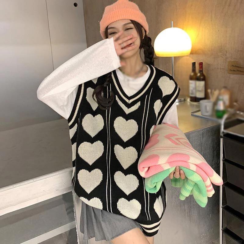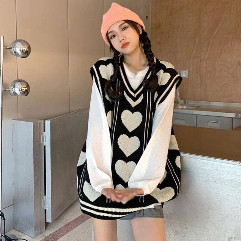 ✨Áo Gile len form rộng hình trái tim thời trang Hàn Quốc