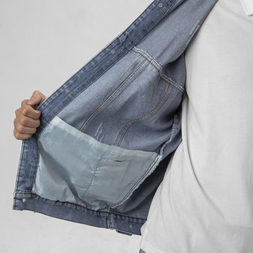 Thông tin chi tiết của sản phẩm áo khoác jean nam màu xanh cơ bản cào xước - Xuất xứ: Việt Nam - Chất liệu : Jean dệt cực chuẩn, không nhăn, có độ bền