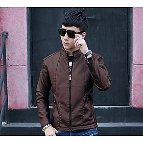 Áo khoác da nam lót lông cổ bo thời trang AD30 nâu PigoFashion