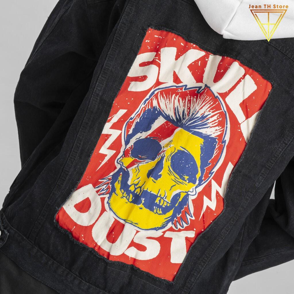 ✨Áo khoác jean nam đen có nón nỉ in Skul Dust, áo khoác bò cá tính, trẻ trung