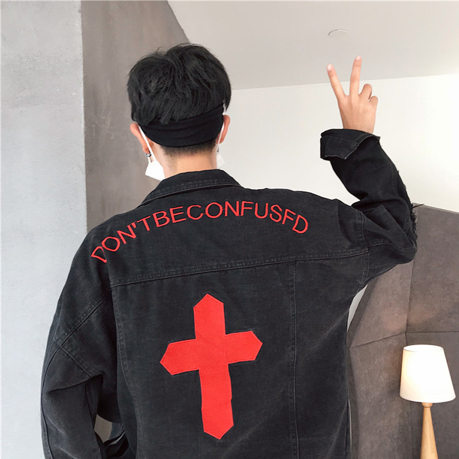 ✨Áo khoác Jeans Nam phối hình chữ Thập thời thượng