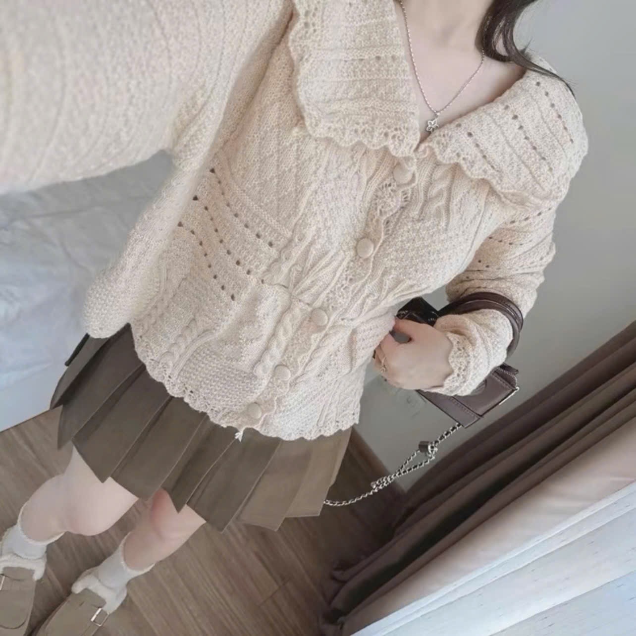 ✨Áo khoác len kiểu dệt kim cổ bẻ tiểu thư