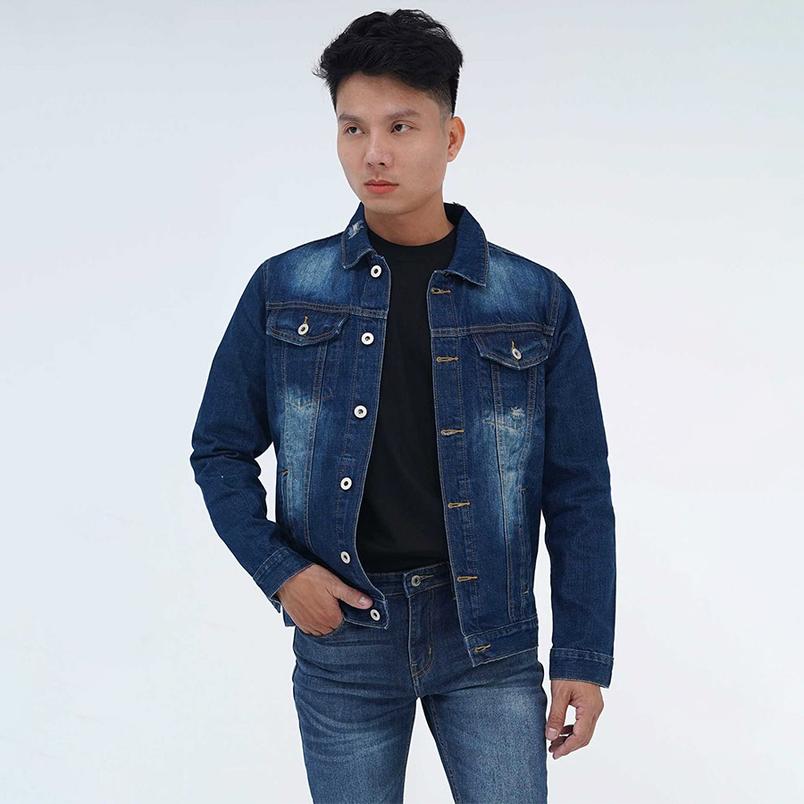 Thông tin chi tiết của sản phẩm áo khoác jean nam màu xanh cơ bản cào xước - Xuất xứ: Việt Nam - Chất liệu : Jean dệt cực chuẩn, không nhăn, có độ bền