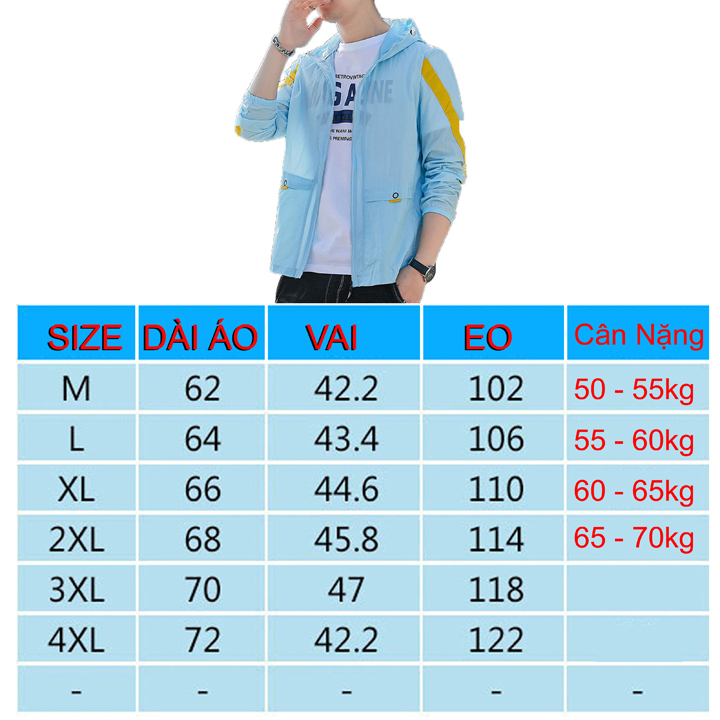 Chất liệu dù cao cấp 2 lớp chống nắng và chống nước 2 màu như hình, khách có thể mặc đc 2 lớp xanh và đen Size L 50-65kg Size XL 65-75kg Size XXL từ