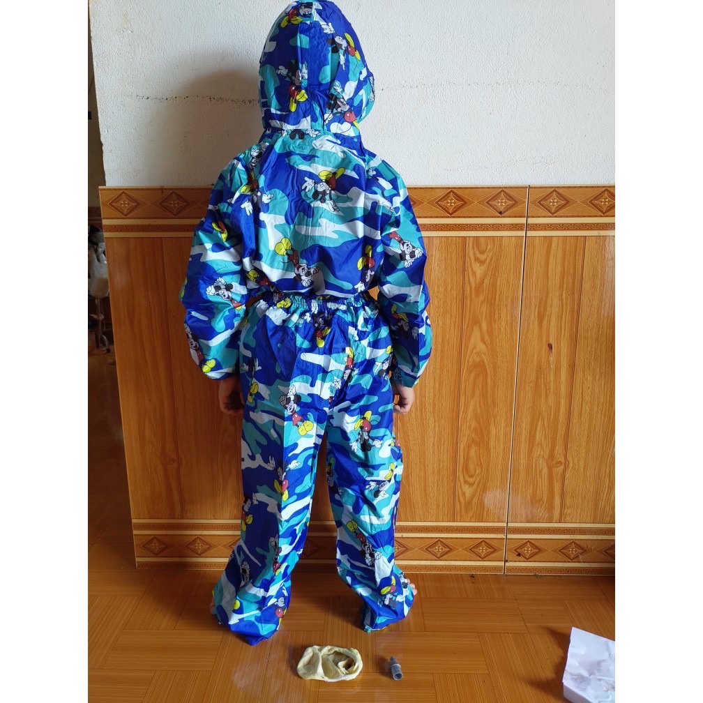 - Bộ áo quần đi mưa cho bé từ 3 - 5 tuổi , vải dù chống thấm , siêu bền , nhẹ , áo mưa có túi đựng xinh xắn phù hợp cho bé