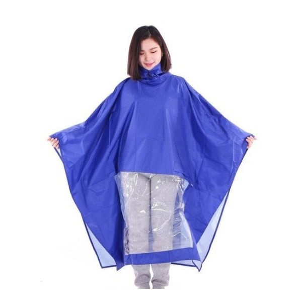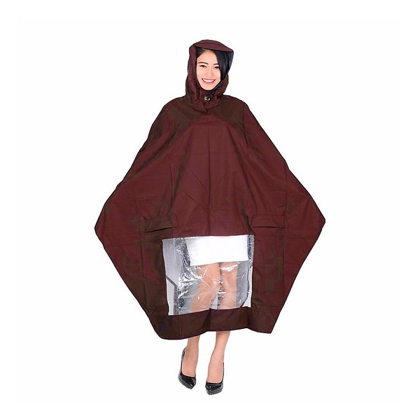 - Áo mưa choàng thiết kế thông minh, tiện dụng với phần nhựa kính trong suốt trên tà áo trước trùng khớp vị trí đèn pha xe máy khi người mặc áo mưa ngồi điều khiển xe. Bảo đảm an toàn khi đi trời tối.