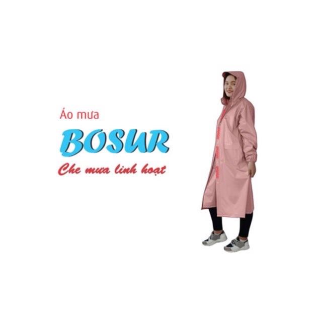 Áo mưa Bosur – che mưa linh hoạt với kiểu thiết kế thon gọn chuyên biệt cho một người mặc. Sự kết hợp giữa dây kéo và nút bấm chắc chắn giúp người sử dụng tiện lợi khi mặc vào hay cỡ ra. Vạt chân áo tùy chỉnh mở rộng giúp người láy xe dể dàng chống chân khi đổ xe và linh hoạt xoay chuyển.