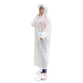- Áo mưa thiết kế màu trắng trong suốt, có khẩu trang tiện lợi cùng tay cánh dơi rộng rãi giúp che mưa hiệu quả mà không vướng víu khi chạy xe. - Được làm