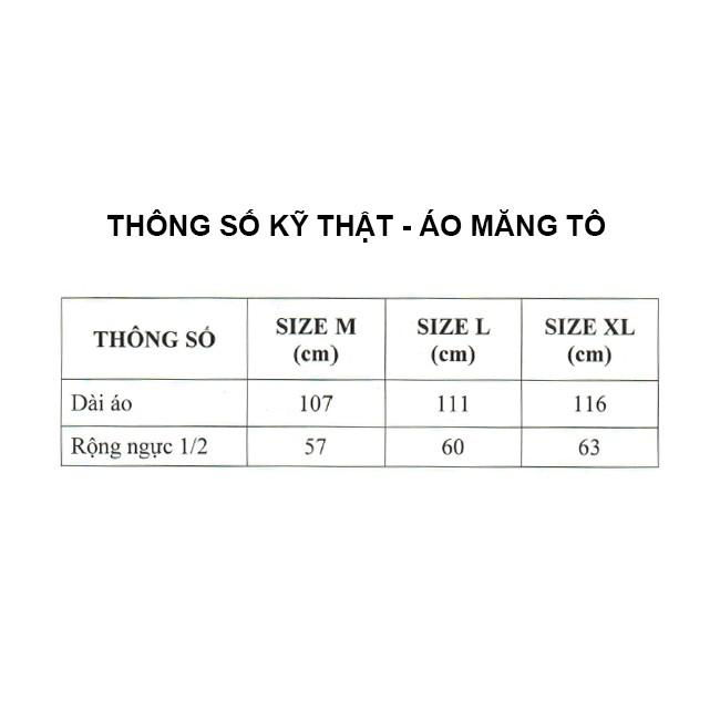 Áo mưa măng tô (Mantle) là dòng sản phẩm áo mưa cho cao cấp. Bộ áo mưa được thiết kế với phong cách thời trang cho cả nam và nữ. Sản phẩm không chỉ mặc đi mưa mà còn là sản phẩm làm đẹp trong mưa. Áo mưa măng tô (mantle) Nam và Nữ, có nhiều kích cỡ và màu sắc phù hợp với vóc dáng của người Việt. Sản phẩm được đóng hộp bao bì trang nhã, sang trọng, là sản phẩm vừa bảo vệ sức khỏe và làm đẹp vào mùa mưa, cũng là món quà ý nghĩa cho bạn bè, người thân. Có 4 size theo chiều cao của người mặc; M : 1m55 – 1m60 L : 1m60 – 1m65 XL : 1m65 – 1m70 2XL: 1m70 – 1m75