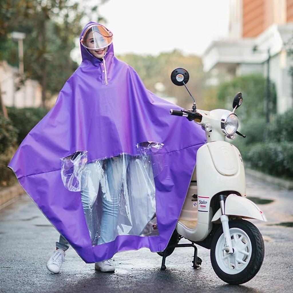 Áo Mưa Người Lớn Đi Xe Máy, 1 Đầu 2 Đầu Có Kính Che Mặt Trong Suốt, Áo Mưa Thời Trang Phản Quang