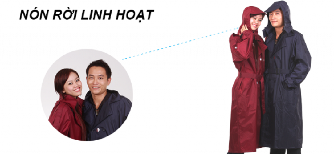 Áo mưa đôi, chất liệu vải dù ép PVC cao cấp siêu bền, chống thấm nước cực tốt Áo mưa thiết kế dạng tay cánh dơi gọn nhẹ, màu sắc thanh lịch. Thiết kế