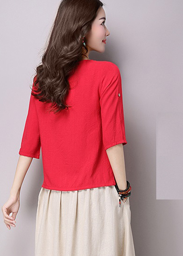 ღ THÔNG TIN SẢN PHẨM: Tên sản phẩm: Áo đỏ cổ khoét vai Màu sắc: Đỏ Chất liệu: Gân ý Chi tiết sản phẩm: không lót, không túi. Thông số
