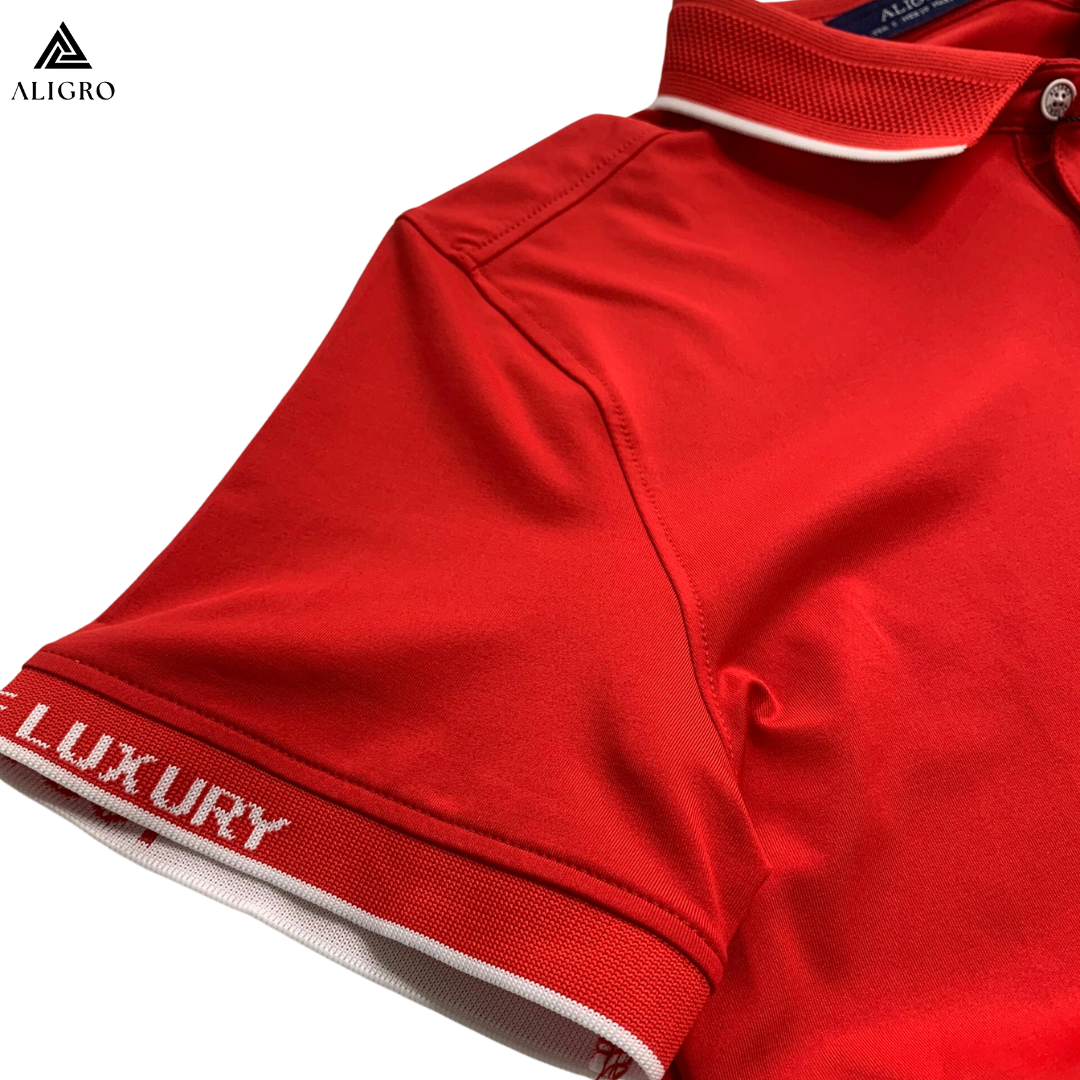 ✨Áo polo golf nam ngắn tay ALIGRO chất vải coolmax màu đỏ trơn năng động ALGPLO107
